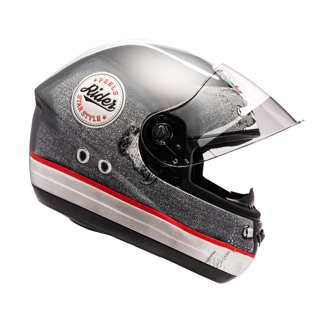 O Capacete Peels Spike Jeans CZ/Vermelho combina um visual arrojado com proteção de alta qualidade, perfeito para quem aprecia pilotar com estilo e segurança.