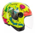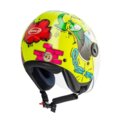 Decoração e Pintura: Com uma combinação de cores limão e azul, o capacete apresenta um acabamento que resiste ao desgaste e mantém a estética vibrante por mais tempo.