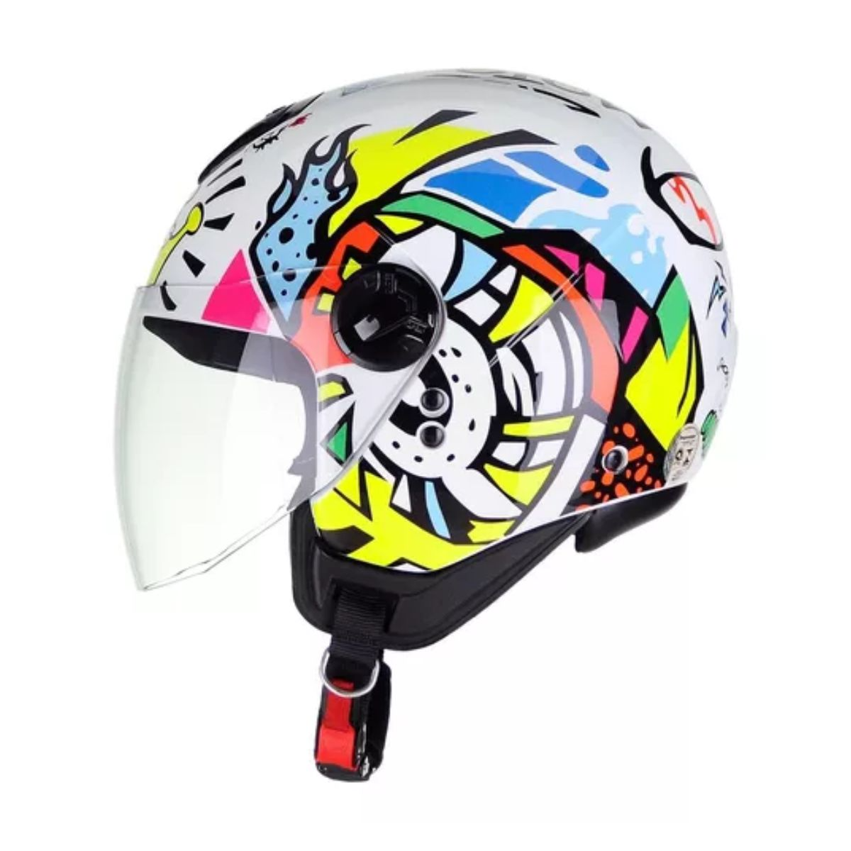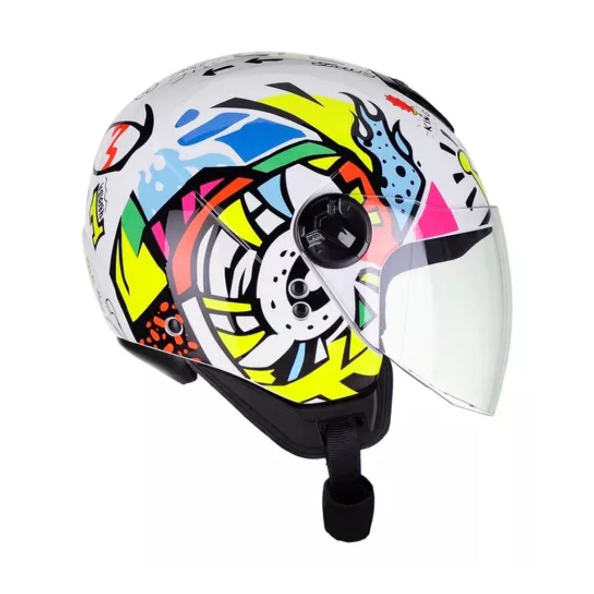 Experimente o Capacete Peels Freeway King Branco/Colorido e sinta a diferença em cada passeio urbano com um capacete que oferece segurança e um visual marcante!