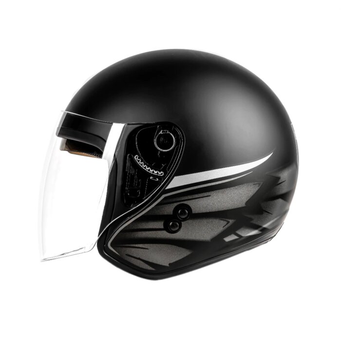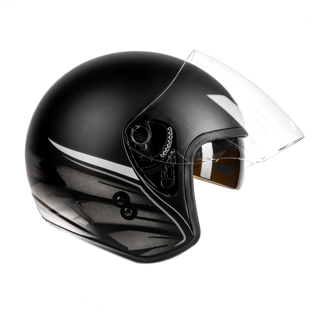 • Viseira em policarbonato de 2 mm com dupla curvatura