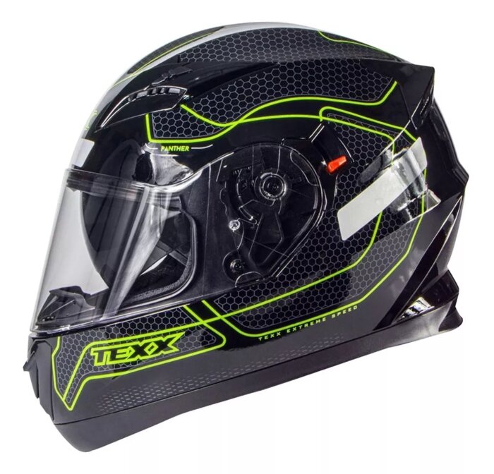 O Capacete Texx Strike Panther Verde Brilho foi desenvolvido para motociclistas que buscam segurança, conforto e design esportivo. Com uma construção robusta e de alta performance, este capacete oferece proteção de qualidade e uma experiência confortável em todas as viagens.