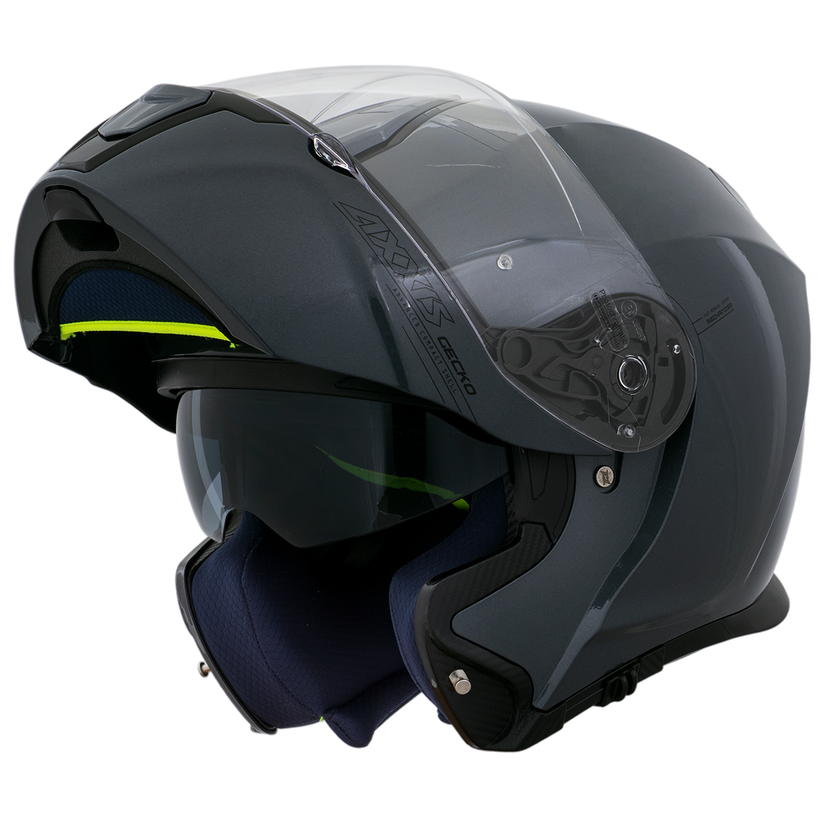 Sempre que o nome do capacete incluir as letras SV, indicará que ele vem com o sistema Sun Visor. O Axxis Gecko SV é equipado com essa tecnologia, que oferece um óculos solar interno, ideal para diferentes condições de iluminação. Em dias ensolarados, o Sun Visor poderá ser abaixado para proporcionar uma visão mais clara e melhorar a segurança do piloto, garantindo uma experiência de pilotagem mais confortável e segura.