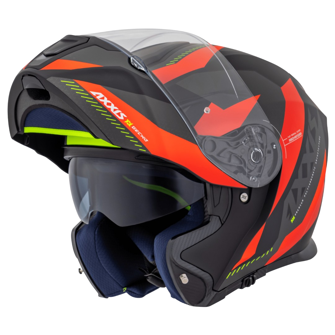 Garanta já o seu Capacete Axxis Gecko SV Shield B5 - Red Fluo Mate na Ferrugem Acessórios e pilote com segurança, conforto e praticidade em qualquer condição de luz! ?????????